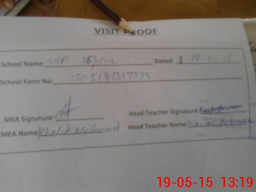 | Attendance Register | Head Teacher | MEA with School | Visit Proof |
