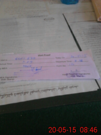 | Monitoring Date: 20-05-2015 | Start Time: 20-05-2015 07:27 AM | End Time: 20-05-2015 08:46 AM | Name of MEA: Wa**** Ah**** (R**** | |