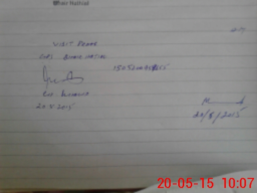 | Monitoring Date: 20-05-2015 | Start Time: 20-05-2015 09:35 AM | End Time: 20-05-2015 10:07 AM | Name of MEA: Re**** Za**** Pa**** Ka**** | |