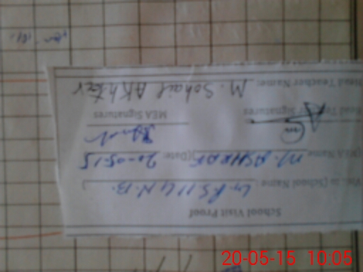 | School Visited by School Health & Nutrition Supervisor (No. of Visits) | 1 | Name1: | CH IBRAR HASSAN | Name2: | |