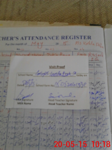 | Attendance Register | Head Teacher | MEA with School | Visit Proof |
