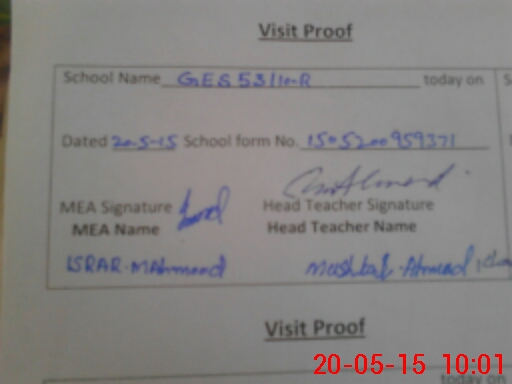| Attendance Register | Head Teacher | MEA with School | Visit Proof |