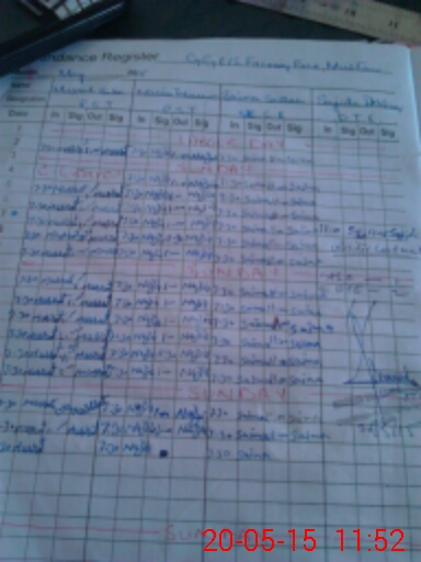 | CNIC | Full Name | Designation | R/C | Absence During Last Calender Month |