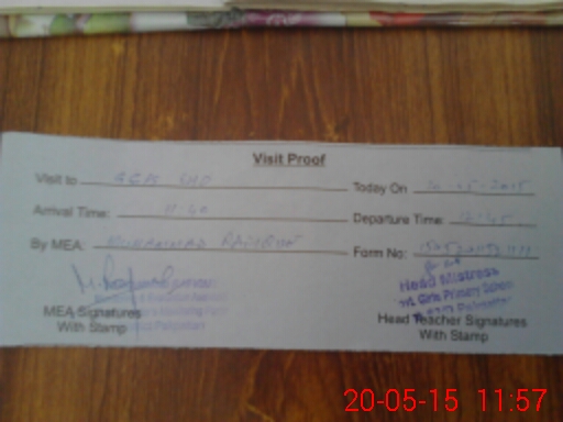 | Attendance Register | Head Teacher | MEA with School | Visit Proof |