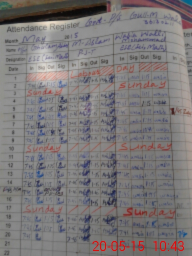 | CNIC | Full Name | Designation | R/C | Absence During Last Calender Month |