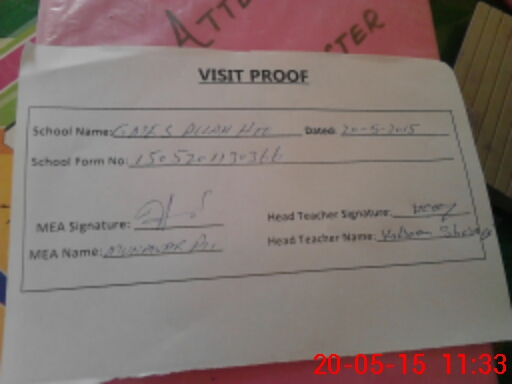 | Attendance Register | Head Teacher | MEA with School | Visit Proof |