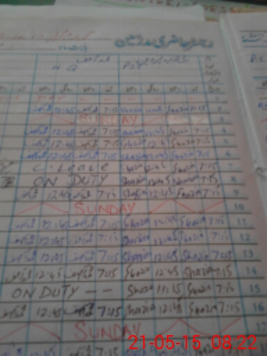 | CNIC | Full Name | Designation | R/C | Absence During Last Calender Month |
