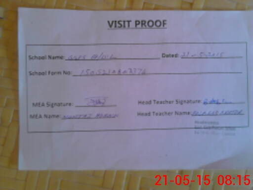 | Attendance Register | Head Teacher | MEA with School | Visit Proof |