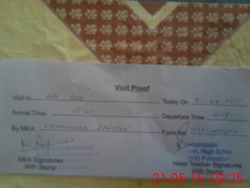 | Certified that this School was Inspected by the Undersigned MEA/DMO Today and the Information Stated Above is as Per Record. | |||||