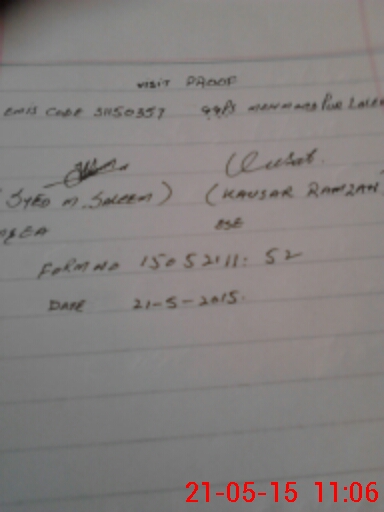 | Monitoring Date: 21-05-2015 | Start Time: 21-05-2015 10:35 AM | End Time: 21-05-2015 11:23 AM | Name of MEA: Mu**** Sa**** BN**** 33 | |
