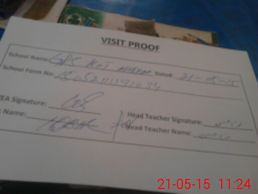 | Remarks (Use Separate Page if Required): SMC and FTF record not available Less students in school due to Maila Head teacher in meeting at AEO office | |||||