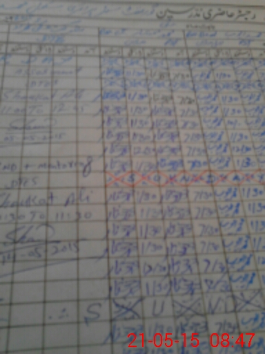 | Monitoring Date: 21-05-2015 | Start Time: 21-05-2015 08:28 AM | End Time: 21-05-2015 08:59 AM | Name of MEA: Za**** Hu**** | |