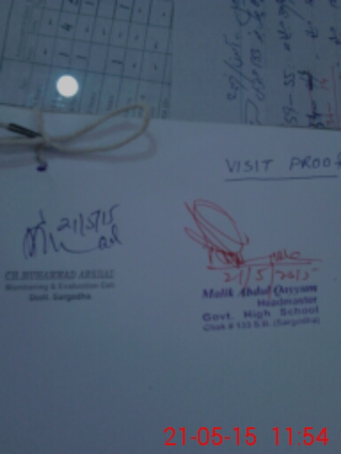 | School Visited by School Health & Nutrition Supervisor (No. of Visits) | 1 | Name1: | Abdul Hafeez | Name2: | |