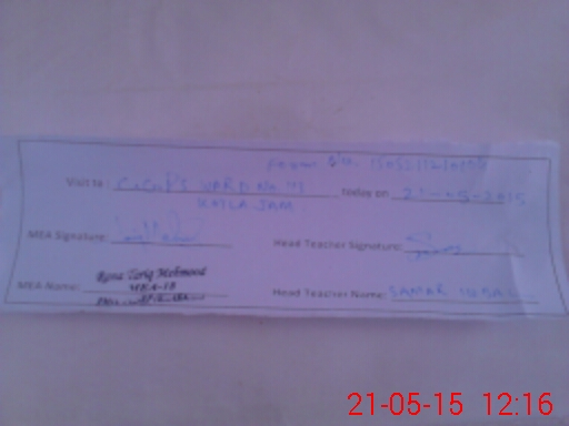 | School Visited by School Health & Nutrition Supervisor (No. of Visits) | 1 | Name1: | Najeebullah Khan | Name2: | |