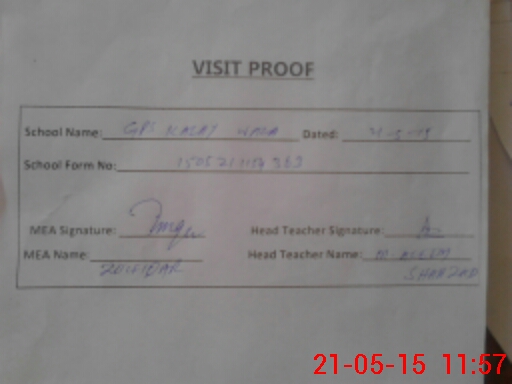 | Attendance Register | Head Teacher | MEA with School | Visit Proof |