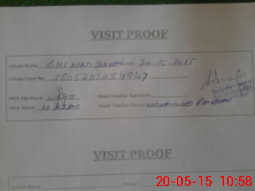 | Attendance Register | Head Teacher | MEA with School | Visit Proof |
