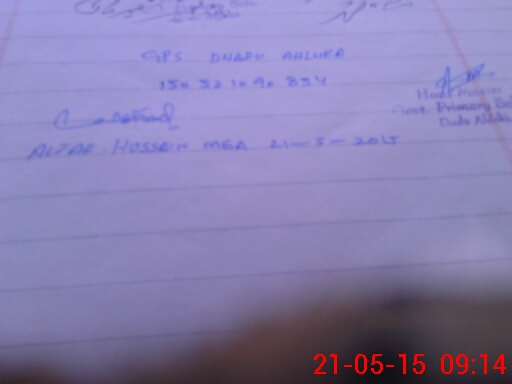 | Monitoring Date: 21-05-2015 | Start Time: 21-05-2015 08:30 AM | End Time: 21-05-2015 09:14 AM | Name of MEA: Al**** Hu**** BN**** | |