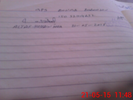 | Monitoring Date: 21-05-2015 | Start Time: 21-05-2015 10:54 AM | End Time: 21-05-2015 11:49 AM | Name of MEA: Al**** Hu**** BN**** | |
