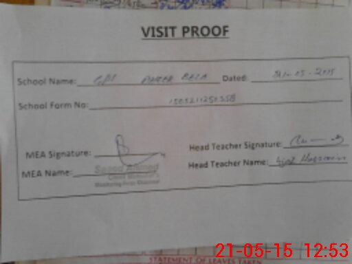 | Attendance Register | Head Teacher | MEA with School | Visit Proof |