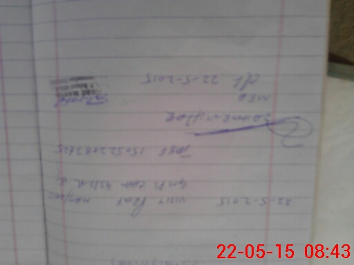 | Monitoring Date: 22-05-2015 | Start Time: 22-05-2015 08:12 AM | End Time: 22-05-2015 09:03 AM | Name of MEA: Za**** BN**** | |