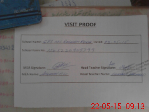 | Attendance Register | Head Teacher | MEA with School | Visit Proof |