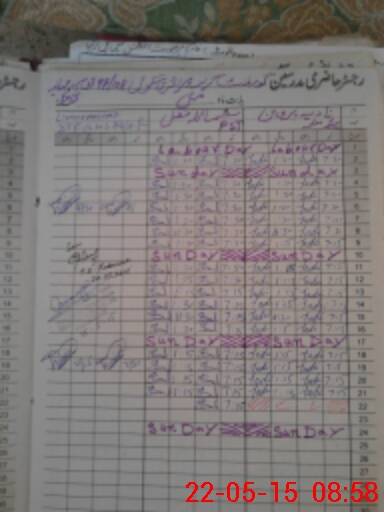 | CNIC | Full Name | Designation | R/C | Absence During Last Calender Month |