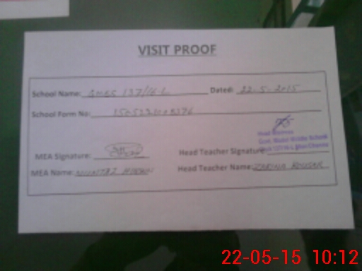 | Attendance Register | Head Teacher | MEA with School | Visit Proof |