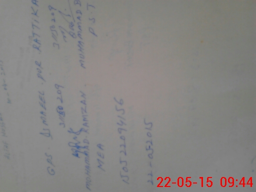 | Monitoring Date: 22-05-2015 | Start Time: 22-05-2015 09:21 AM | End Time: 22-05-2015 09:45 AM | Name of MEA: Mu**** Ra**** BN**** 37 | |