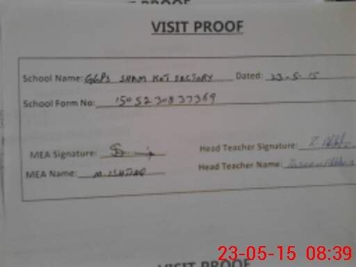 | Attendance Register | Head Teacher | MEA with School | Visit Proof |
