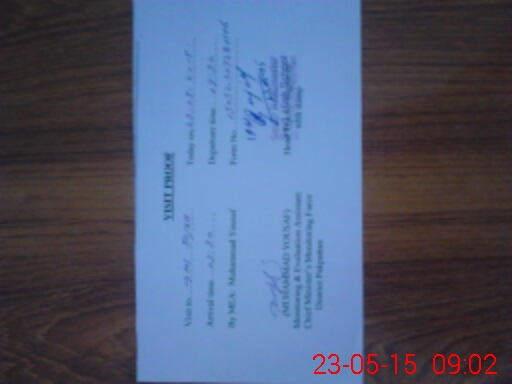 | School Visited by School Health & Nutrition Supervisor (No. of Visits) | 1 | Name1: | Kashif Bashir | Name2: | |