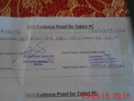 | Attendance Register | Head Teacher | MEA with School | Visit Proof |