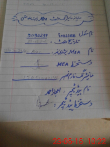 | Monitoring Date: 23-05-2015 | Start Time: 23-05-2015 10:02 AM | End Time: 23-05-2015 10:23 AM | Name of MEA: Ay**** Me**** BN**** 13 | |