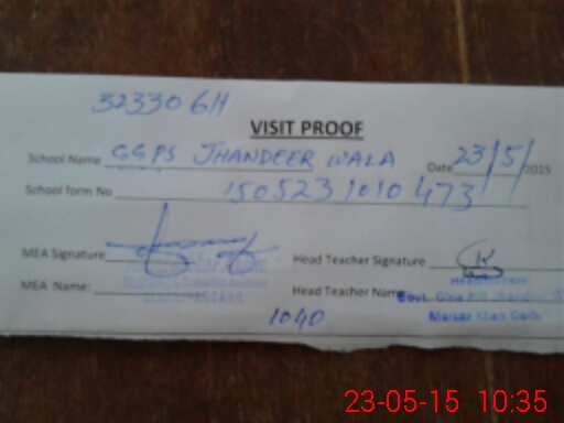 | EMIS Code: 32330611 | Name of School: GGPS JHANDEER WALA | |||