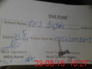 | Attendance Register | Head Teacher | MEA with School | Visit Proof |