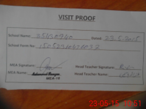 | Certified that this School was Inspected by the Undersigned MEA/DMO Today and the Information Stated Above is as Per Record. | |||||