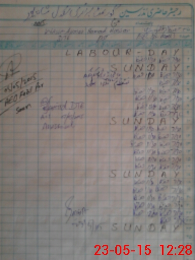 | CNIC | Full Name | Designation | R/C | Absence During Last Calender Month |