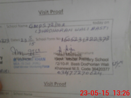 | EMIS Code: 36420377 | Name of School: GPS MODEL 72/10-R, DHORIYAN WALI, KHANEWAL | |||