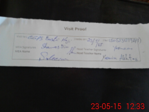 | Attendance Register | Head Teacher | MEA with School | Visit Proof |