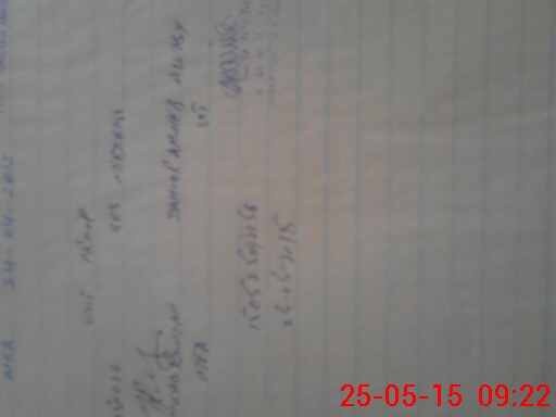 | Monitoring Date: 25-05-2015 | Start Time: 25-05-2015 08:41 AM | End Time: 25-05-2015 09:35 AM | Name of MEA: Mu**** Ra**** BN**** 37 | |