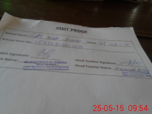 | School Visited by School Health & Nutrition Supervisor (No. of Visits) | 1 | Name1: | Ali Ahmed Zia | Name2: | O |