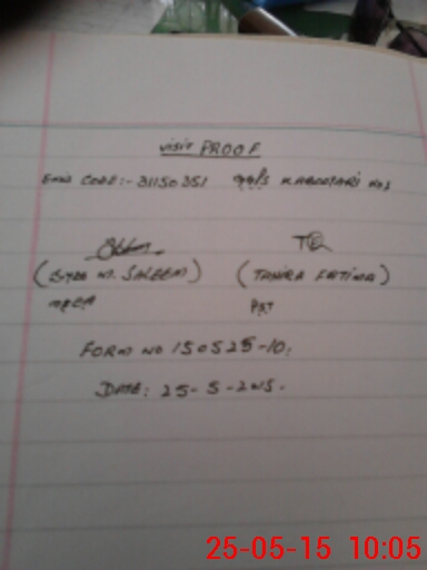 | Monitoring Date: 25-05-2015 | Start Time: 25-05-2015 09:29 AM | End Time: 25-05-2015 10:09 AM | Name of MEA: Mu**** Sa**** BN**** 33 | |