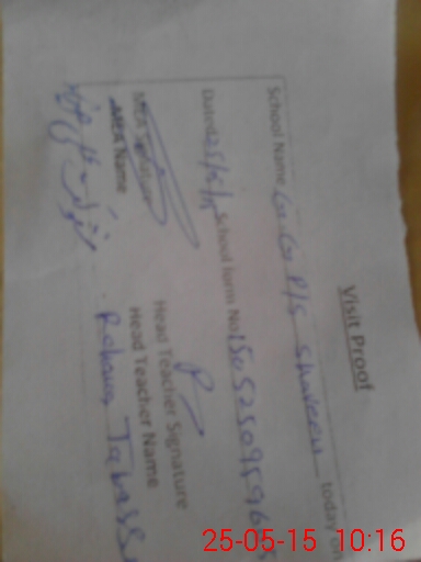 | School Visited by School Health & Nutrition Supervisor (No. of Visits) | 1 | Name1: | Muhammad Tayyab | Name2: | |