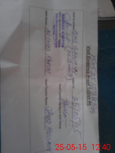 | School Visited by School Health & Nutrition Supervisor (No. of Visits) | Name1: | Sajid Hafeez | Name2: | ||