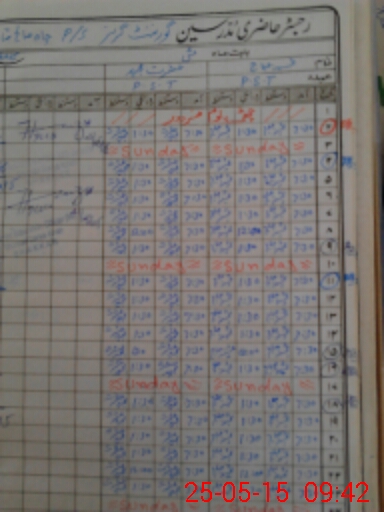 | CNIC | Full Name | Designation | R/C | Absence During Last Calender Month |