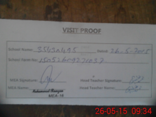 | Attendance Register | Head Teacher | MEA with School | Visit Proof |