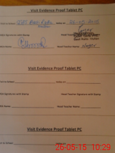 | Attendance Register | Head Teacher | MEA with School | Visit Proof |
