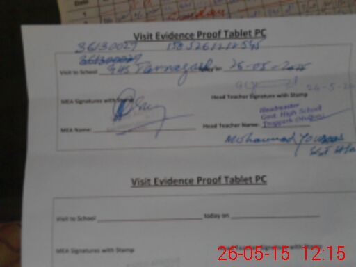 | Attendance Register | Head Teacher | MEA with School | Visit Proof |