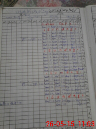 | CNIC | Full Name | Designation | R/C | Absence During Last Calender Month |