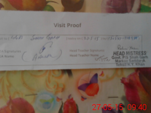 | Attendance Register | Head Teacher | MEA with School | Visit Proof |