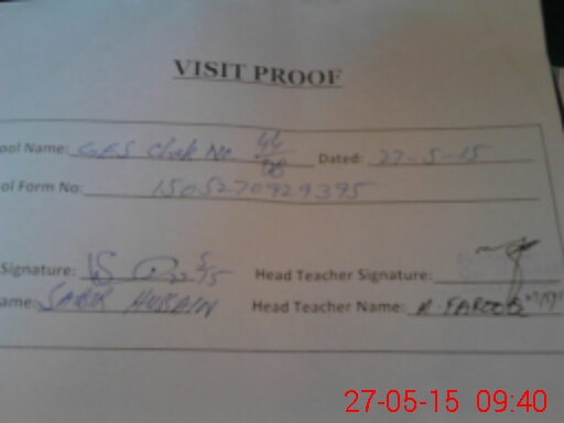 | Attendance Register | Head Teacher | MEA with School | Visit Proof |